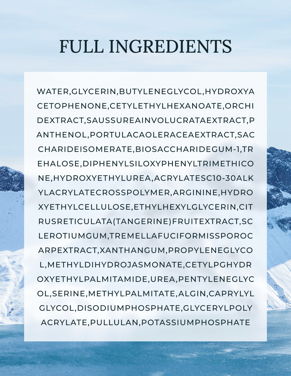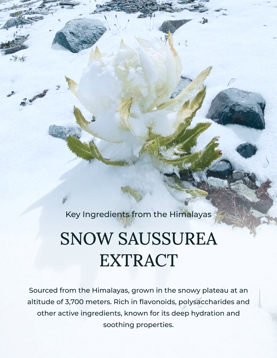 Sourced from the Himalayas, grown in the snowy plateau at an altitude of 3,700 meters. Rich in flavonoids, polysaccharides and other active ingredients, known for its deep hydration and soothing properties.