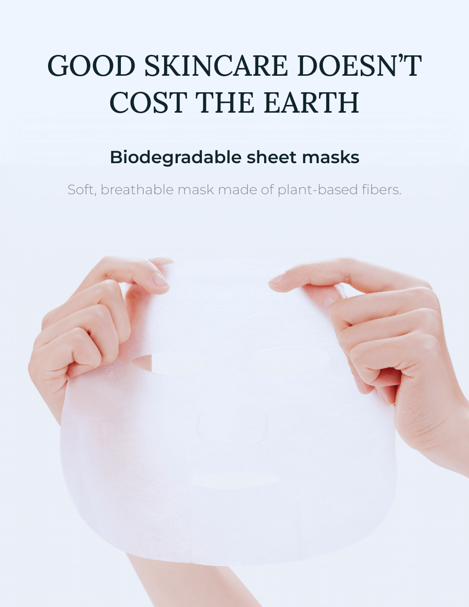The soft, breathable mask is made of plant-based fibers, which not only minimise skin sensitivity but also makes the mask biodegradable.