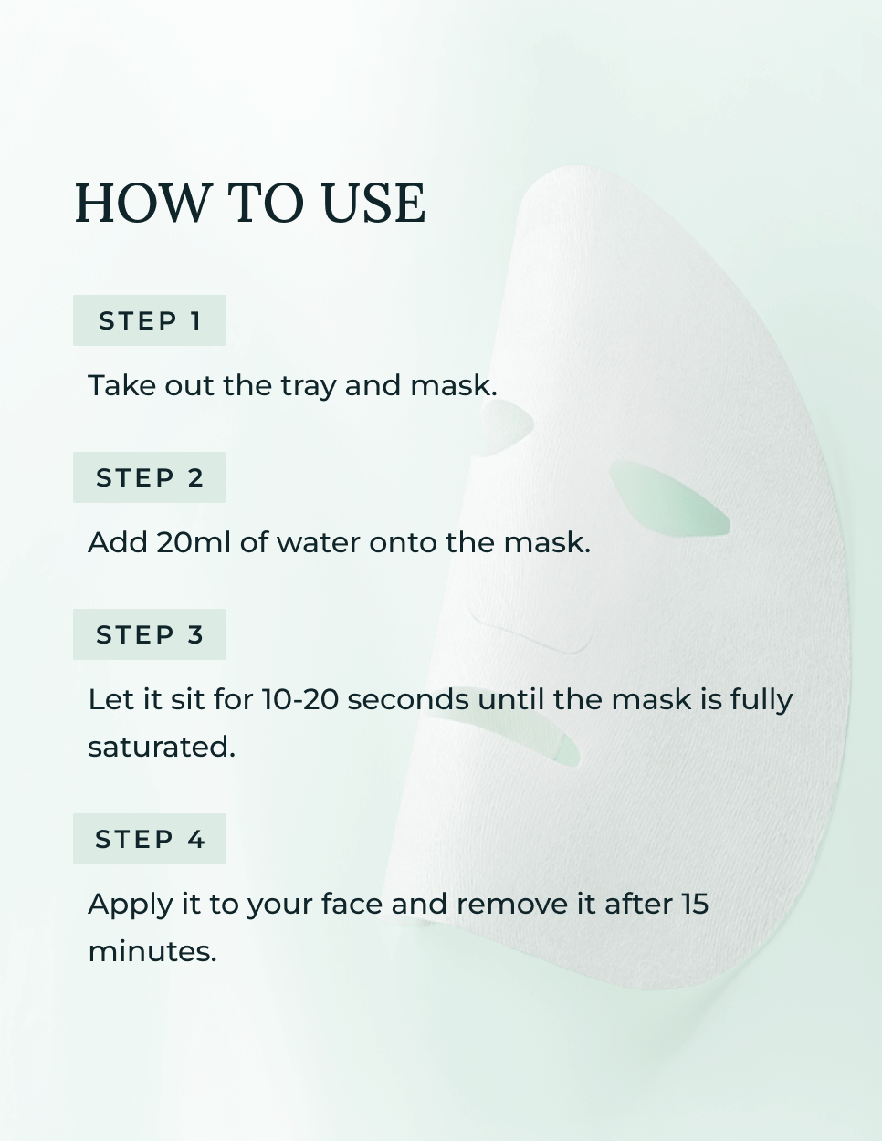 Unfold the mask and gently apply it to your face, remove after 15 minutes.